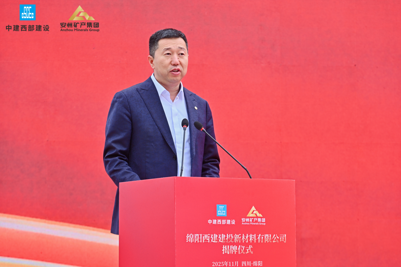 11月18日,綿陽安州礦產(chǎn)資源集團(tuán)有限公司(簡(jiǎn)稱“安礦集團(tuán)”)與中建西部建設(shè)集團(tuán)第一有限公司(簡(jiǎn)稱“中建西部一公司”)共同出資設(shè)立的綿陽西建建投新材料有限公司(簡(jiǎn)稱“西建建投)在安州正式揭牌。此次揭牌是央地國(guó)企強(qiáng)強(qiáng)聯(lián)手、優(yōu)勢(shì)互補(bǔ)的合作典范,不僅為綿陽綠色建材產(chǎn)業(yè)發(fā)展與“無廢城市”建設(shè)注入強(qiáng)勁動(dòng)力,也開啟了雙方共創(chuàng)共贏的嶄新篇章。中建西部一公司黨委書記、董事長(zhǎng)徐志飛,安礦集團(tuán)黨支部書記、董事長(zhǎng)袁波出席揭牌儀式并致辭。